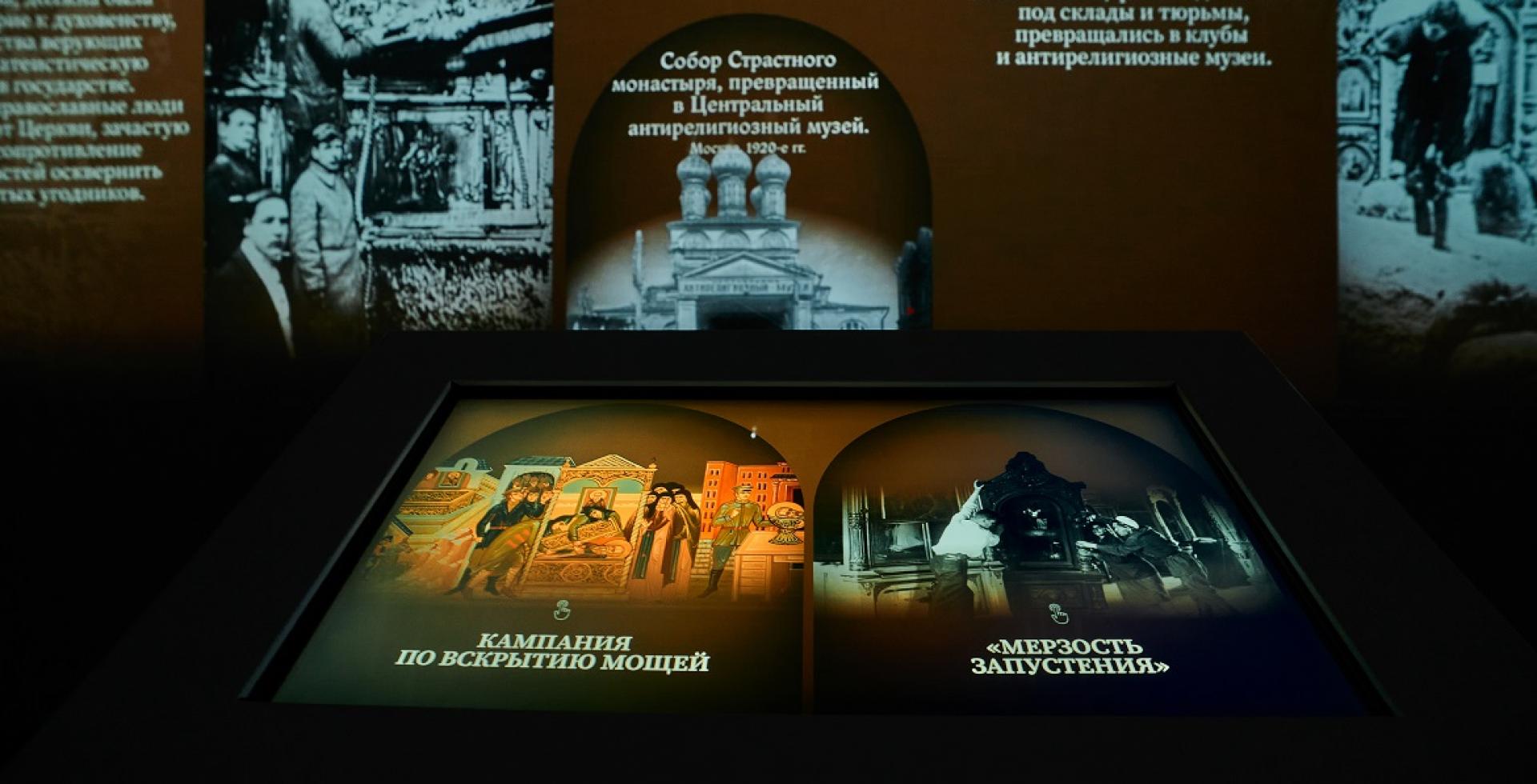 В 10 тематических залах, рассказывающих о различных этапах жизни патриарха, представлены мультимедийные материалы – коллажи, компьютерная графика, видеомэппинг, видеопроекции, сенсорные интерактивные экраны, интерактивные книги и кинекты.