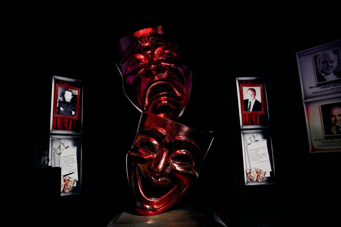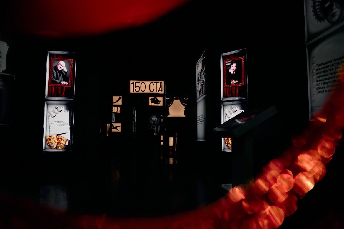В экспозиции соединились имена, эпохи, редкие материалы и современные мультимедийные решения. На сенсорных экранах оживают портреты делегатов первого Всероссийского съезда сценических деятелей 1897 года и артистов революционной эпохи. Также можно полистать виртуальные книги с эскизами костюмов Всеволода Мейерхольда и образами великих актеров на сцене, посмотреть интерактивные архивы о русском театре XIX века и даже познакомиться с упражнениями из «Механики» Мейерхольда в специальной игре.